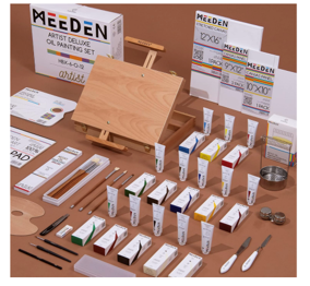 MEEDEN Oil Painting Kit, Painting Sets with Sketch Easel Box, Professional Art Paint Supplies Kit with Paint Brushes, Palette Knives, Canvases for Painting Supplies for Adults