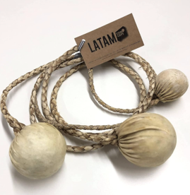 The gauchos were usually mestizos, people of mixed European and Indian heritage, but they could also be white, black or mulatto. They were excellent riders who could break a wild horse in a day and used a whip and a bola to herd animals. The bola consists of three long cords of braided leather tied together with a knot at one end. On the opposite ends, each is tied with a stone about the size of a tangerine. To bring down an animal, the gaucho holds the knotted end and whirls the braided cords over his head, then aims for the animal. When released, the cords separate in the air and wrap around the legs of the animal, causing it to falter or fall so the thrower can catch it. (Looking for Garibaldi, page 73)