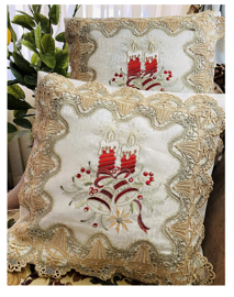 Elegant Burano Lace Holiday Christmas Floral Poinsettia, Mistletoe, and Candle Bell Throw Pillow/Cushion Cover: 16×16 Inches Beige